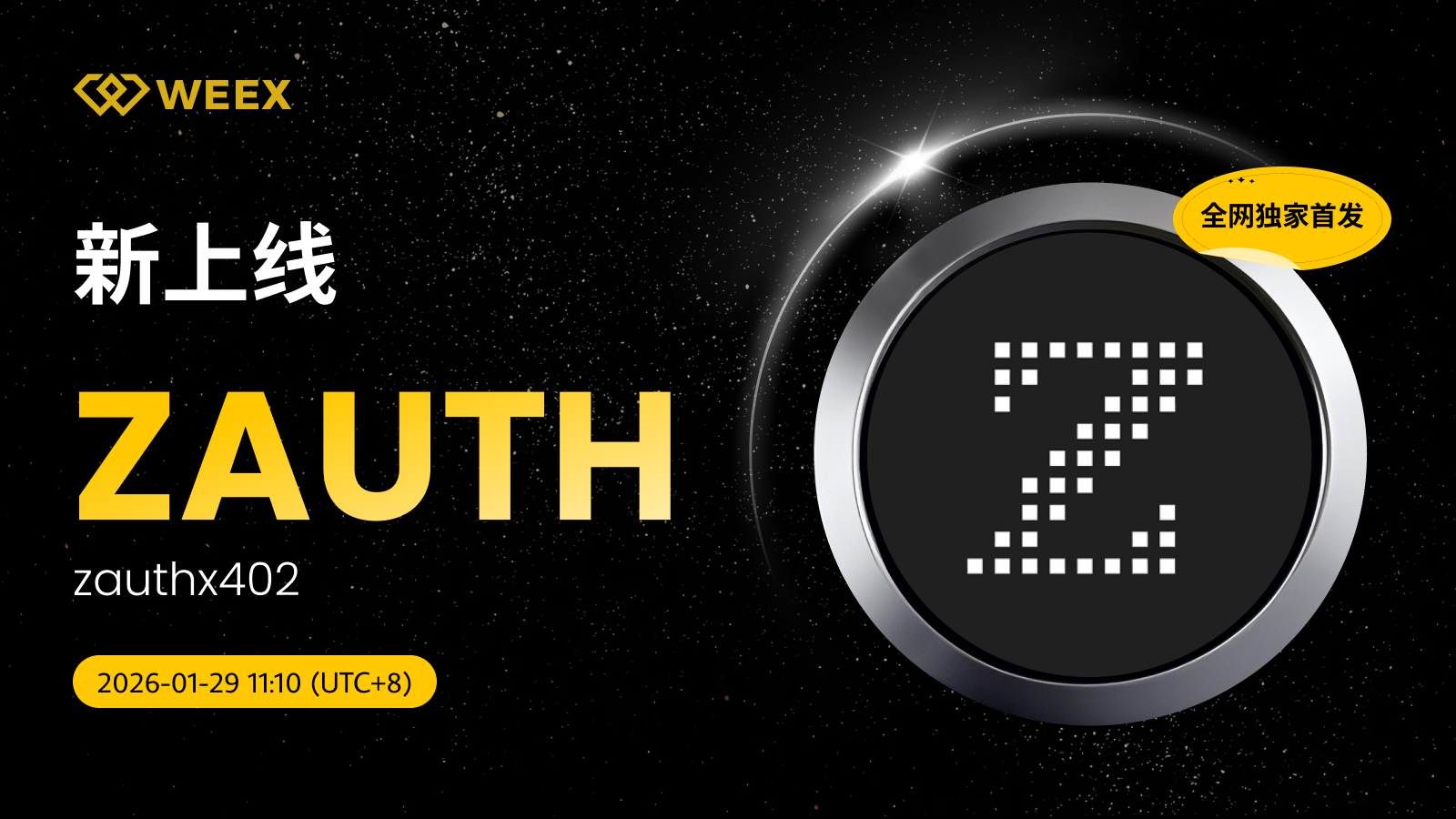 【全网独家首发】zauthx402 (ZAUTH) 现已上线WEEX!