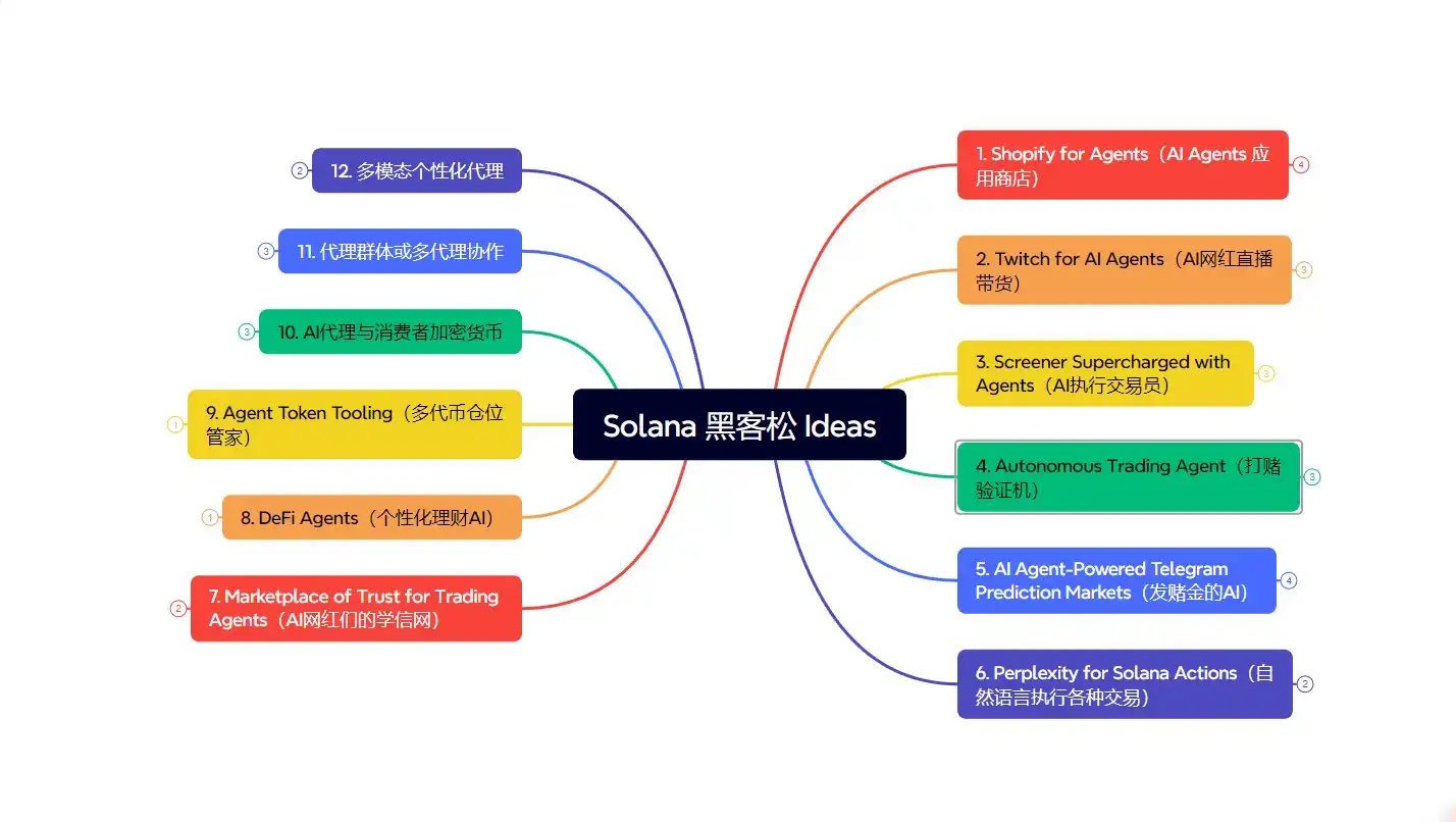 近期的 Solana AI 黑客松中,各领域的项目展现了巨大的潜力,这些创新有望在未来的 DeFi、交易、投资、游戏和音乐等领域中脱颖而出,在 DeFi 和交易代理方面的项目如 boltrade ai、Cod 3 xOrg、BigTonyXBT 和 fengshuiagent 等将 AI 技术与交易策略相结合提升效率,帮助用户在获得更好的收益表现。